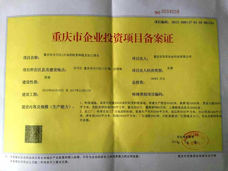 在大西南重庆,通过2015年的实践,将发挥合资公司优势互补的经营模式,以现代牧业发展“种养一体化”为方向,实现2万亩自然生态圈建设,探索出丘陵地带大规模种植苋草的方式和体系。